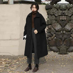 2020冬装新款韩版气质百搭加厚女装毛呢大衣宽松长...