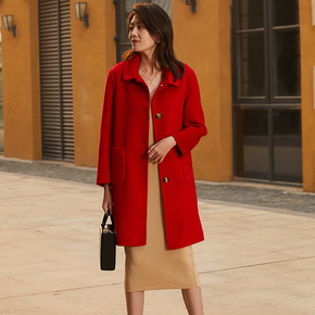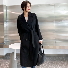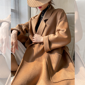 100%羊毛加长款2021年新款M家减龄毛呢外套水...