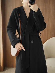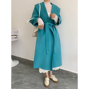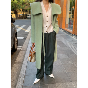 22春季新款韩国东大门大翻领max浴袍系带中长款双...