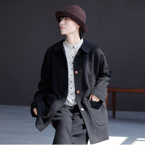 水波纹中长款双面羊毛大衣女娃娃领外套秋冬新款澳毛手...