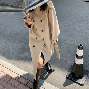 2021年冬装新款女装中长款小个子呢子大衣秋冬季双...
