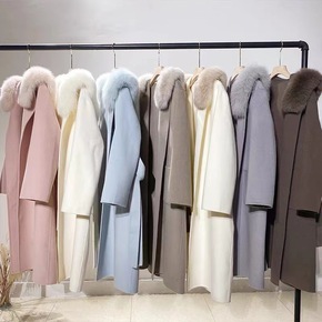 双面羊绒大衣女牛角扣羊毛呢子外套狐狸毛领连帽大衣外...