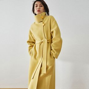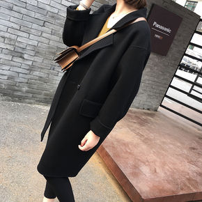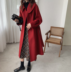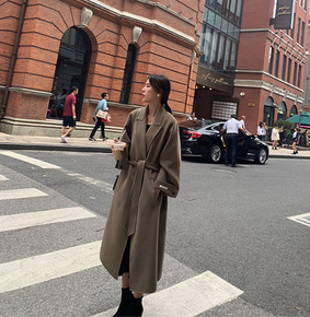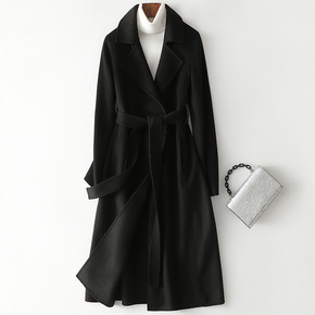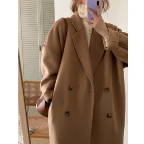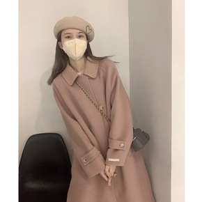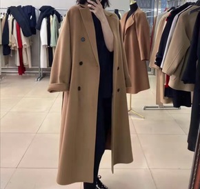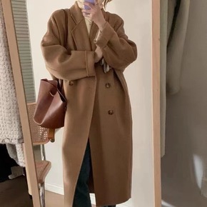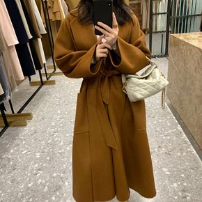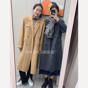 大连21秋冬女装双排扣长款系带宽松韩版双面羊绒大衣...