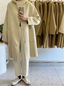 韩货连帽20%山羊绒大衣女中长款2021冬季新款韩...
