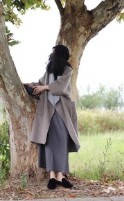 MOXI十三行女装2021外套女秋冬季长款双面羊绒...