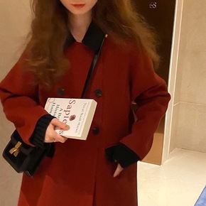 双面羊绒尼大衣女2021秋冬新款赫本风双排扣中长款...