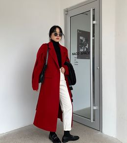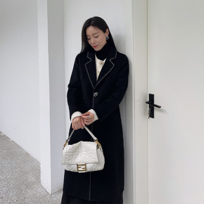 YM 821韩国东大门西装领单排扣长款羊绒大衣21...