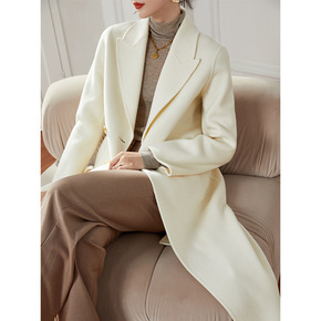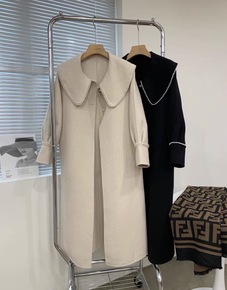 2021秋冬米色娃娃领双面羊绒大衣长款过膝修身显瘦...