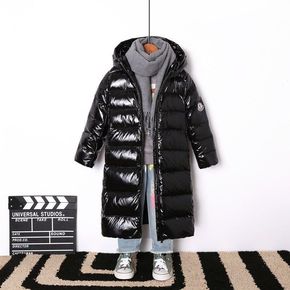 反季清仓新款儿童中长款亮面羽绒服男童女童中大童过膝...