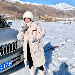 90白鸭绒中长款羽绒服女文艺宽松休闲保暖长袖过膝棒...