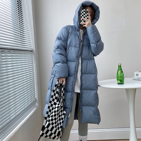 过膝加厚羽绒服女2021冬季新款休闲百搭连帽白鸭绒...