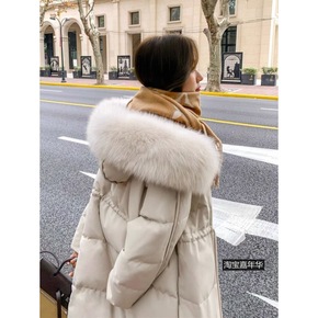 高档羽绒服女加厚中长款狐狸大毛领白鸭绒时尚收腰超长...