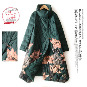 2022欧美亚马逊女装新品大码棉服女中长款印花加厚...