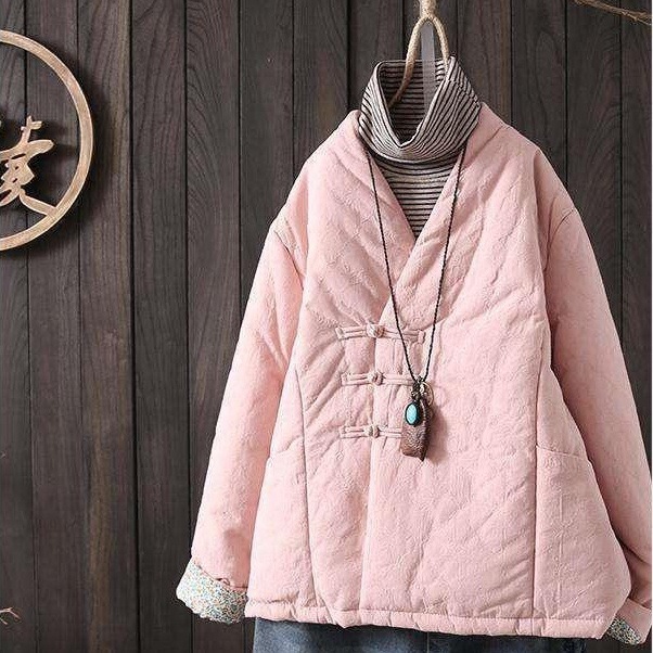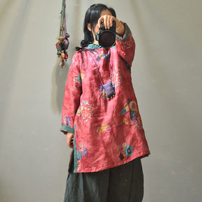 画续大码复古盘扣棉衣棉麻提花中式棉服加厚宽松夹棉外...