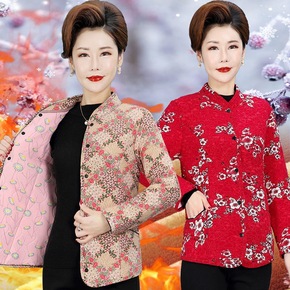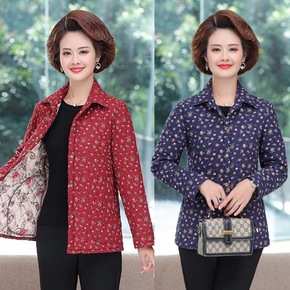 妈妈秋装薄棉衣 中老年女装外套夹棉衬衣大码纯棉秋冬...