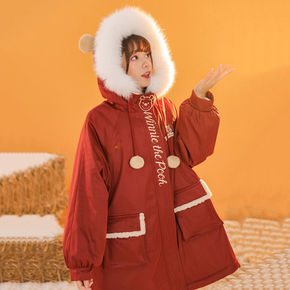 大码韩版宽松面包服棉袄女冬季新款加厚保暖过膝长款棉...