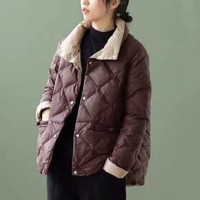 2021年新款轻薄款圆领羽绒服女保暖内胆短款V领外...