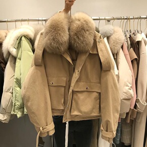 短款派克服女2020冬季新款狐狸大毛领白鸭绒羽绒服...