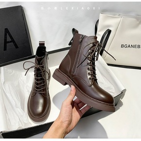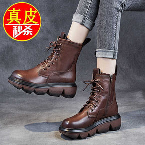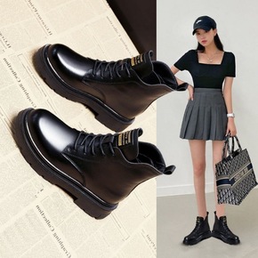 跨境外贸真软皮靴子女短靴2022年新款秋冬季马丁靴...