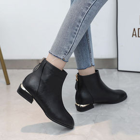马丁靴女英伦风2021秋季新款加绒软皮软底短靴拉链...
