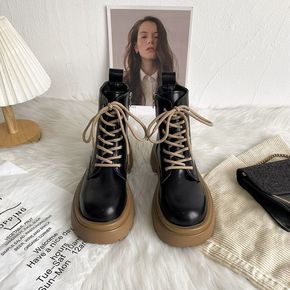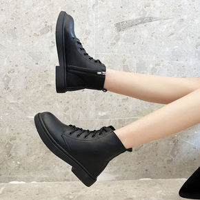 马丁靴女短靴2021年秋冬季新款女靴低跟厚底显脚瘦...