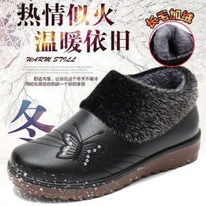妈妈棉鞋女冬季加绒加厚保暖中老年皮鞋防滑真皮女鞋新...
