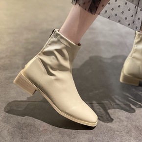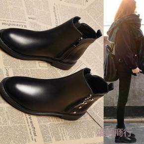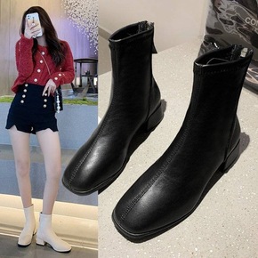 马丁靴女2021新款秋冬英伦风百搭方头瘦瘦靴中跟粗...