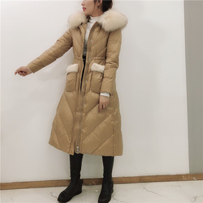 亮面羽绒服女长款过膝2020冬季新款时尚狐狸大毛领...