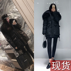 2018新款韩版貉子毛领情侣工装羽绒服女中长款加厚...