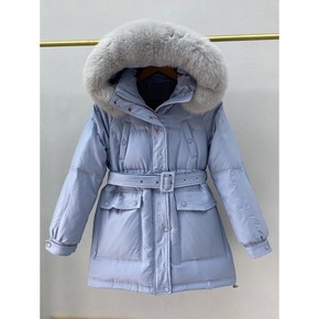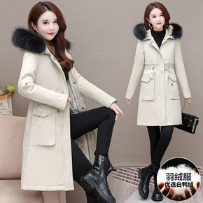 冬季派克大毛领羽绒服女中长款2021新款亮白鸭绒加...