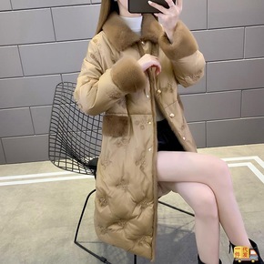 羽绒服女中长款冬装新款滩羊毛毛领宽松显瘦加厚外套S...