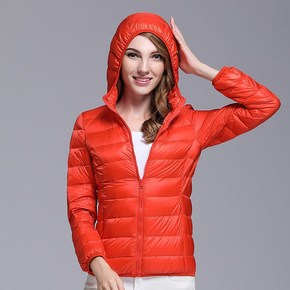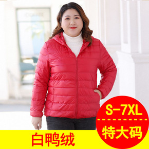 白鸭绒女士连帽大码轻薄羽绒服女短款胖mm外套加肥加...