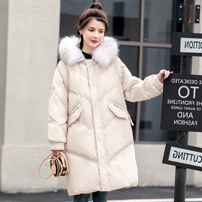 韩版过膝羽绒服女中长款2019冬新款加厚宽松大狐狸...