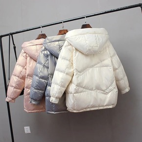 2021新款亮面中短款轻薄羽绒服女轻便韩版宽松连帽...