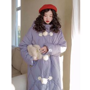 21文艺复古大扣子过膝羽绒服女中长款宽松加厚连帽过...