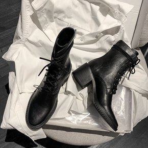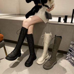 厚底骑士靴女2021年秋冬新款英伦风绑带马丁靴复古...