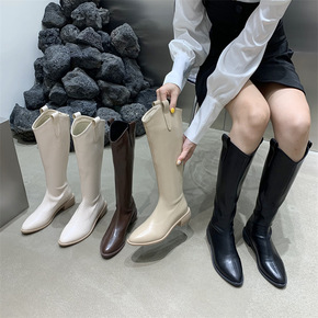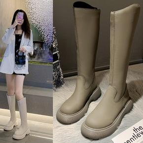 长靴女不过膝2021年新款春秋季白色后拉链高筒显瘦...