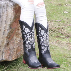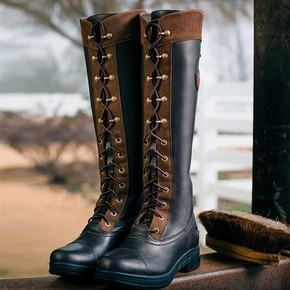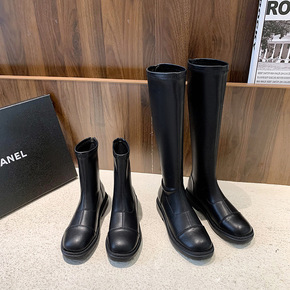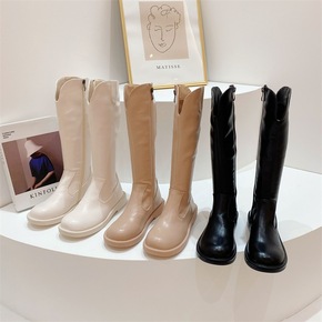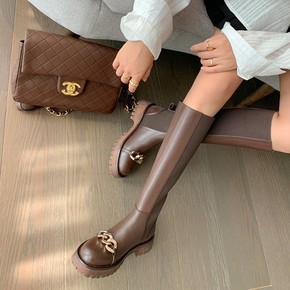 2021年秋冬新款长筒靴女黑色真皮平底马丁骑士靴显...