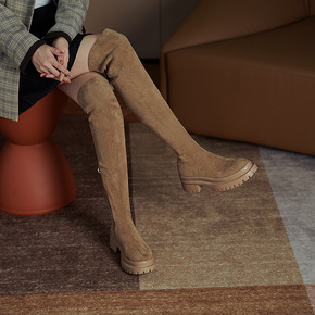 不过膝长靴女2021冬季新款厚底高筒靴网红瘦瘦靴长...