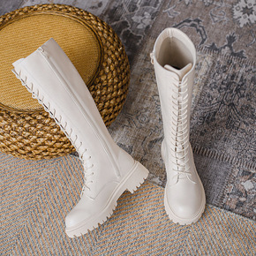 厚底瘦瘦中长筒马丁靴女2021新款韩版米短靴春秋季...