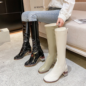 欧美过膝靴长靴中跟粗跟长筒靴秋冬皮靴女后拉链高筒靴...