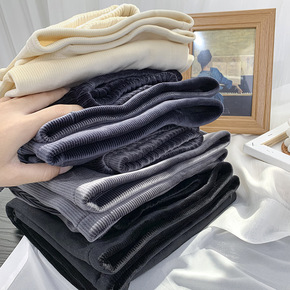 雪尼尔阔腿裤女2021冬季提花单面绒条纹休闲宽松显...