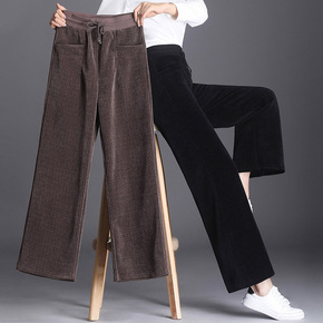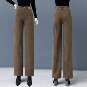 灯芯绒阔腿裤女2021春秋冬季新款高腰裤子休闲加绒...