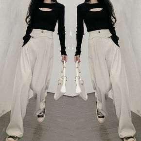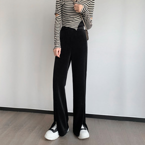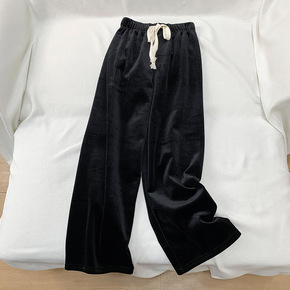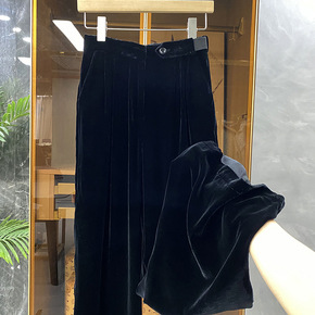 眼爱上~好型遮肉显腿长显时髦!丝绒休闲阔腿裤女20...