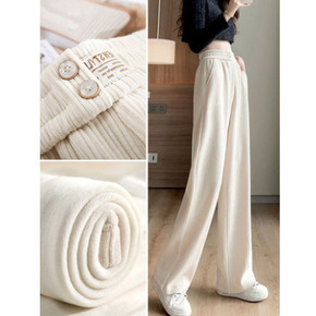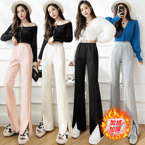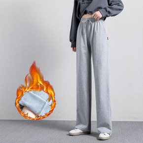 冬季女装加绒加厚宽松休闲直筒显瘦保暖长腿阔腿拖动休...