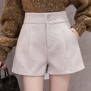 2021秋冬新款加厚毛呢短裤女韩版宽松高腰阔腿裤休...