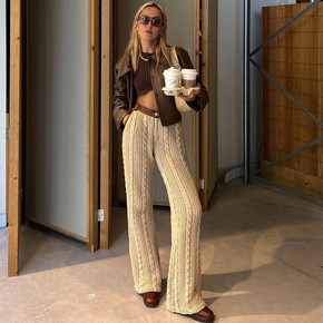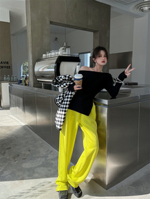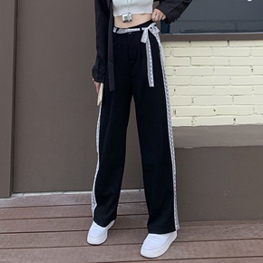 2021新款冬季设计感蕾丝直筒休闲裤女高腰宽松显瘦...