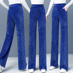 筷子条雪尼尔阔腿裤女灯芯绒春秋冬垂感加绒加厚坚条绒...