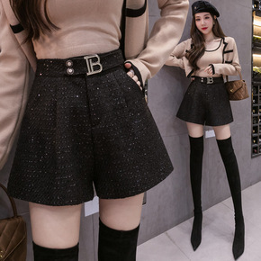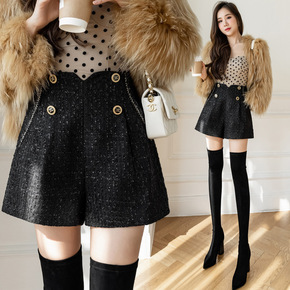 短裤女2021秋冬新款时尚洋气韩版高腰显瘦宽松粗花...