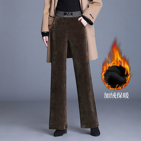 灯芯绒阔腿裤女秋冬高腰加绒加厚宽松休闲女裤条绒直筒...